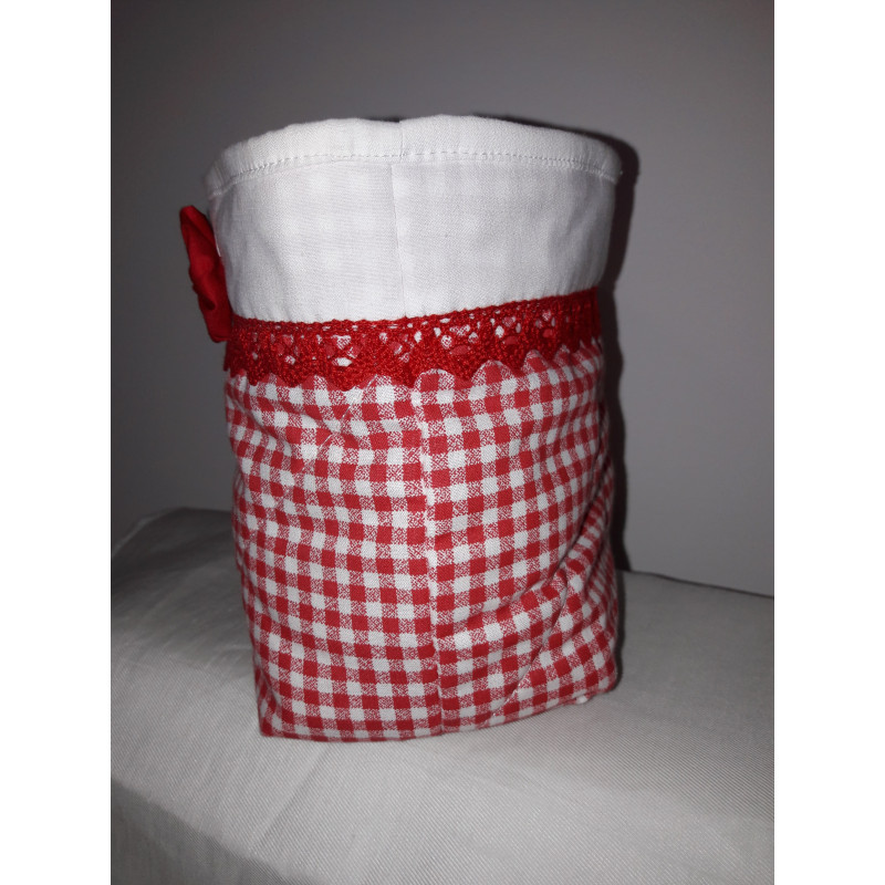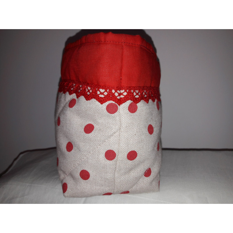 Cestino porta oggetti,in tessuto di cotone in varie fantasie con pizzo e applicazioni varie.