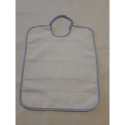 Bavaglino asilo in spugna con greca di cotone Aida “con possibilità di ricamare il nome” rifinito in cotone a scacchetti.